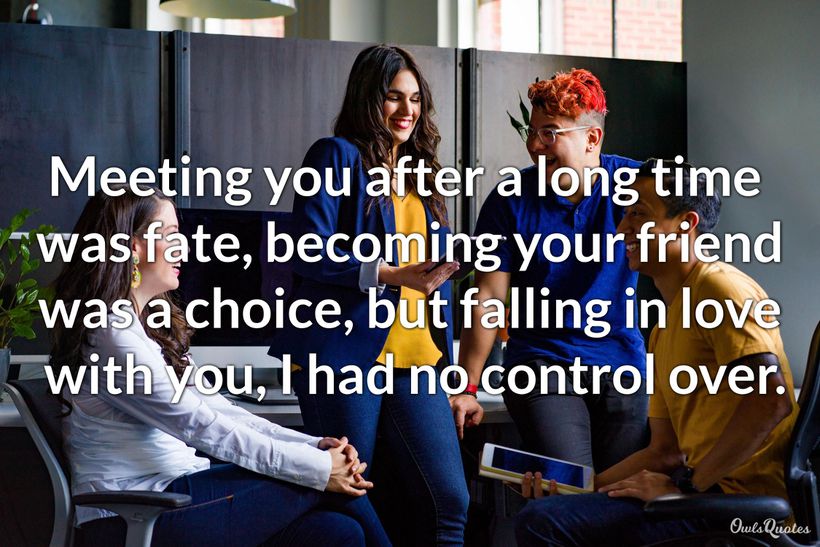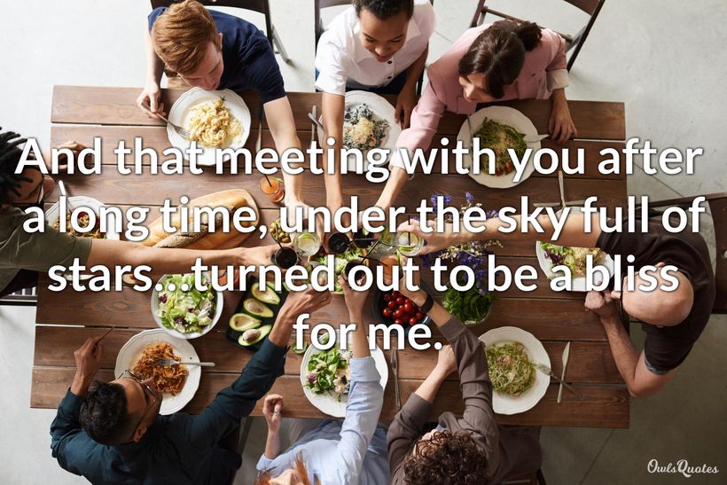 Whether it's an old friend, colleague, distant or close relative, an ex-lover, meeting someone after a long time is an exciting experience. The following quotes on meeting someone after a long time expresses those feelings in a very nice way. You can also find a few quotes about meeting new people at the end.