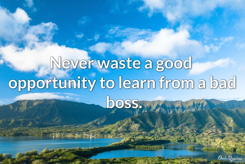 Having a bad boss can make one's life miserable. However, it's not fair to put the blame on another person when you have the power to walk out and find another job. Some people might feel that they have no choice, but even this idea itself is actually a choice. Every bad boss quote shows us how difficult life can become if you have to put up with a terrible leader.