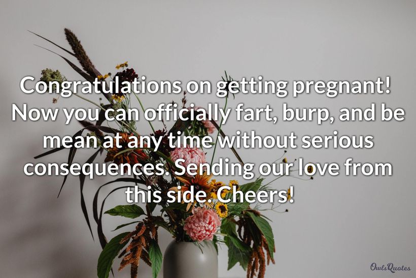 Funny message to congratulate mom-to-be on her pregnancy.