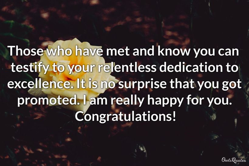 Promotion is a recognition of somebody's hard work. When someone you know gets promoted, a congratulatory message is the least you can do. With these congratulations on promotion messages, you get to do just that in a creative way. By sharing these congratulation messages for promotion with your loved ones, you can be sure of adding to their joy.