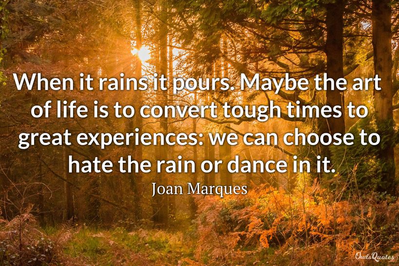 Some people love the rainy season while others hate it. Every "dance in the rain" quote we have included here shows us that every situation in life is beautiful in its own way. The only thing that we need to develop is the right attitude towards the different circumstances in life.
