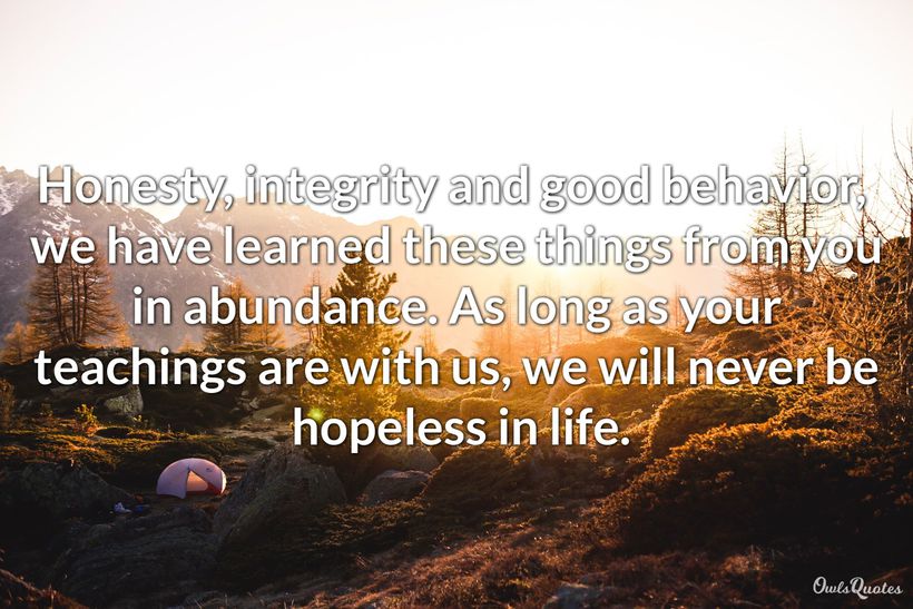 Your teacher taught you about honesty, integrity and good behavior.