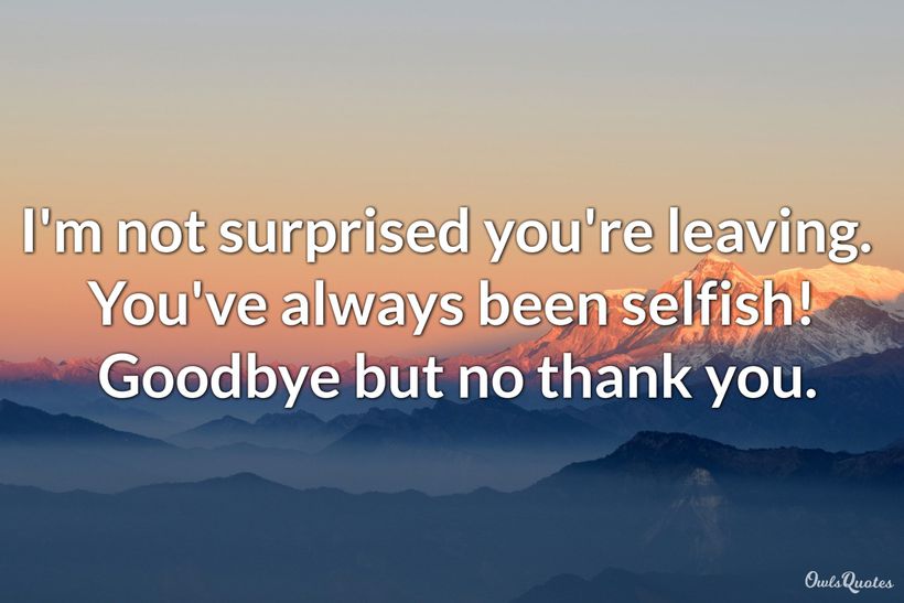 Farewell to the person who's going will be better for the overall environment.