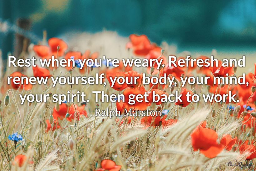 Life is all about balance. Work hard but remember to take time off for rest and relaxation. Try to take at least one day a week off, and spend it doing nothing. If you are one of those people who just can't sit still, then do something relaxing. Reading rest quotes can be a relaxing experience all in itself.