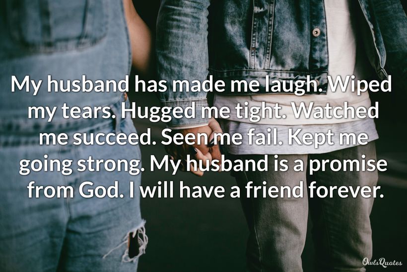 Your husband is everything to you: your guardian angel, your supporter, and your best friend. When times are hard, he will always offer you a shoulder to lean on, and when times are good, he will be there to celebrate with you.