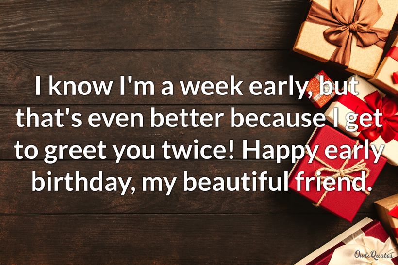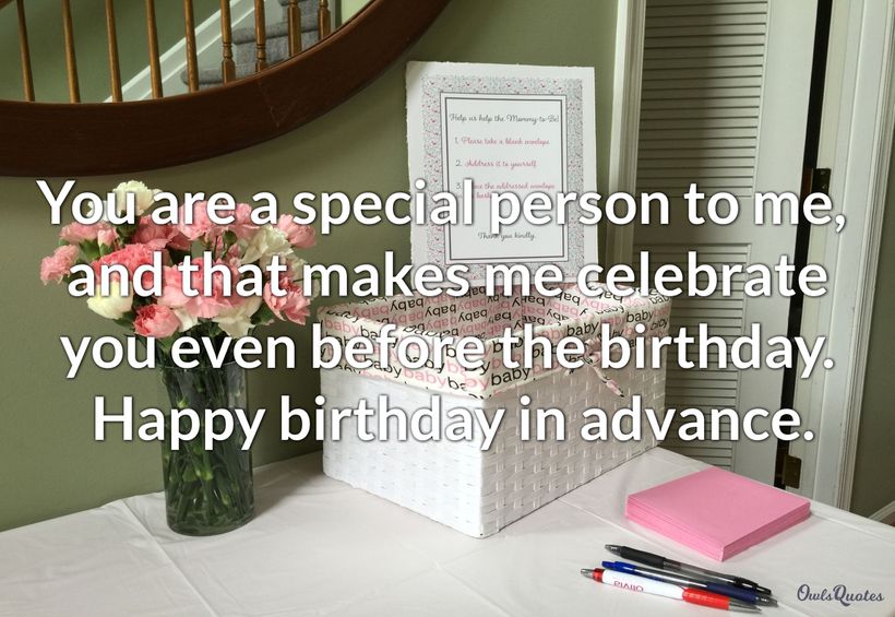 I hope you enjoy receiving early happy birthday wishes.